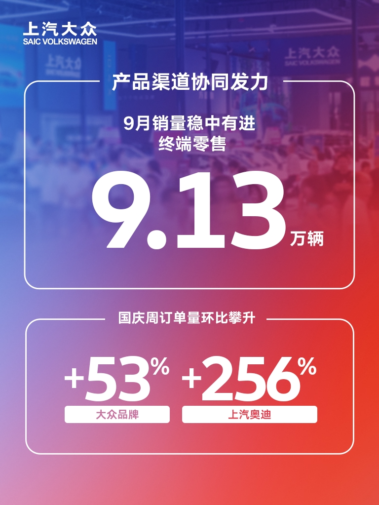 在刚刚过去的国庆周,各地客流攀升,大众品牌、上汽奥迪均迎来订单量环比强劲增长。